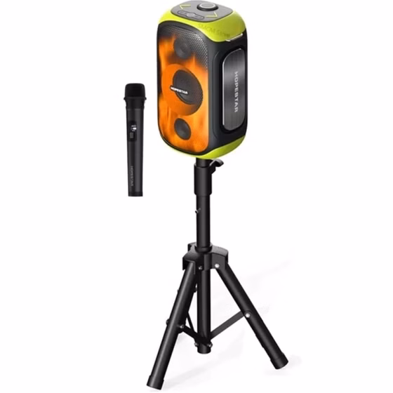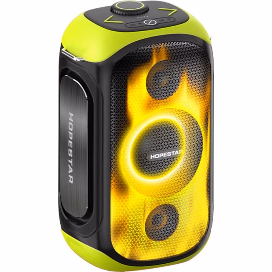 اسپیکر هاپ استار مدل party300 مدل پارتی 300 به همراه میکروفون بیسیم و پایه نگهدارنده، دارای توان خروجی 80 وات است. این اسپیکر با باتری قوی ساعتی عرضه میشود که امکان پخش موسیقی تا 6 ساعت را فراهم میکند.