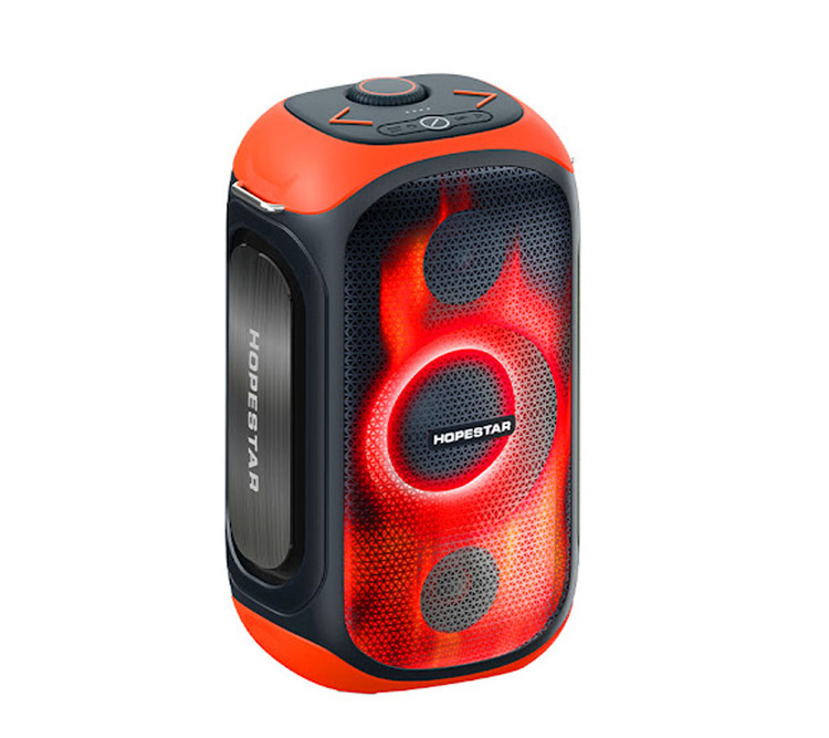 اسپیکر هاپ استار مدل party300 مدل پارتی 300 به همراه میکروفون بیسیم و پایه نگهدارنده، دارای توان خروجی 80 وات است. این اسپیکر با باتری قوی ساعتی عرضه میشود که امکان پخش موسیقی تا 6 ساعت را فراهم میکند.